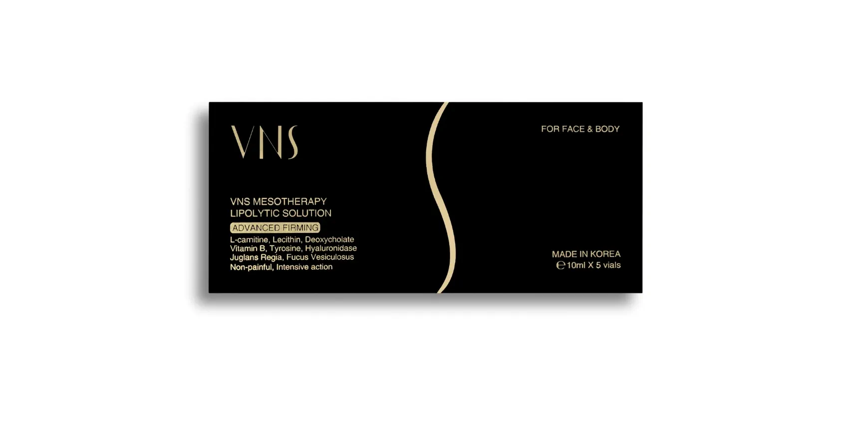 VNS:  A remarkable indirect-acting fat dissolver crafted by Cosmoderma, Inc. Enriched with natural enzyme papain, phospholipid lecithin, and Centella extract, this composition offers a multifaceted approach to fat tissue reduction and restoration of skin elasticity in targeted areas. Suitable for both facial (cheeks, chin) and body correction (armpit area, arms, abdomen, lateral line, thighs, and buttocks).